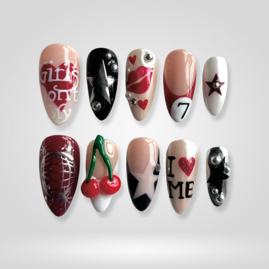 • 10 custom-sized ready-to-wear fake nails